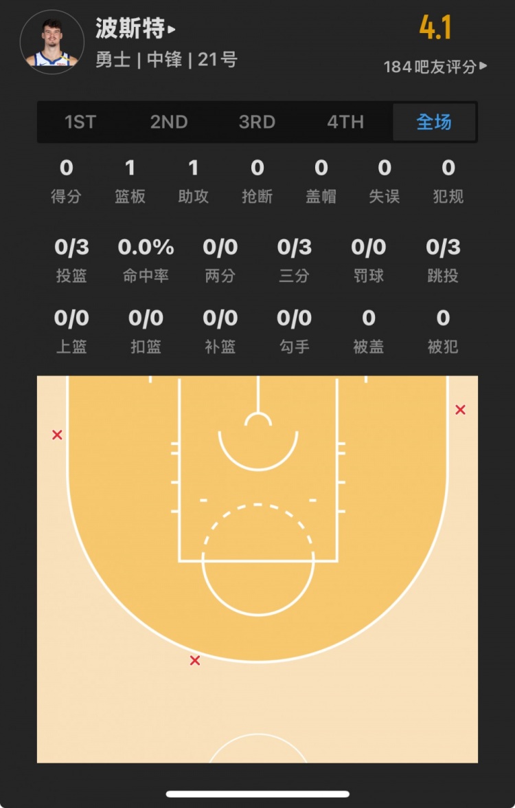 勇士52號秀 昆滕-波斯特 登場7.2分鐘