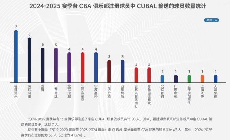 2月14日訊 近日,CBA公司發(fā)布《中國男子籃球職業(yè)聯(lián)賽國內(nèi)球員基礎(chǔ)信息白皮書(2024-2025賽季)》。其中,本賽季各俱樂部中CUBAL輸送球員的統(tǒng)計情況如下。福建有7人最多、同曦6人第二,廣州和山東各5人。 本文標(biāo)簽: CBA 中國籃球 籃球 廣東 遼寧 浙江 廣廈 新疆 北京 上海 山東 深圳 山西 廣州 江蘇 同曦 福建 吉林 天津 青島 四川 北控 寧波 CUBAL