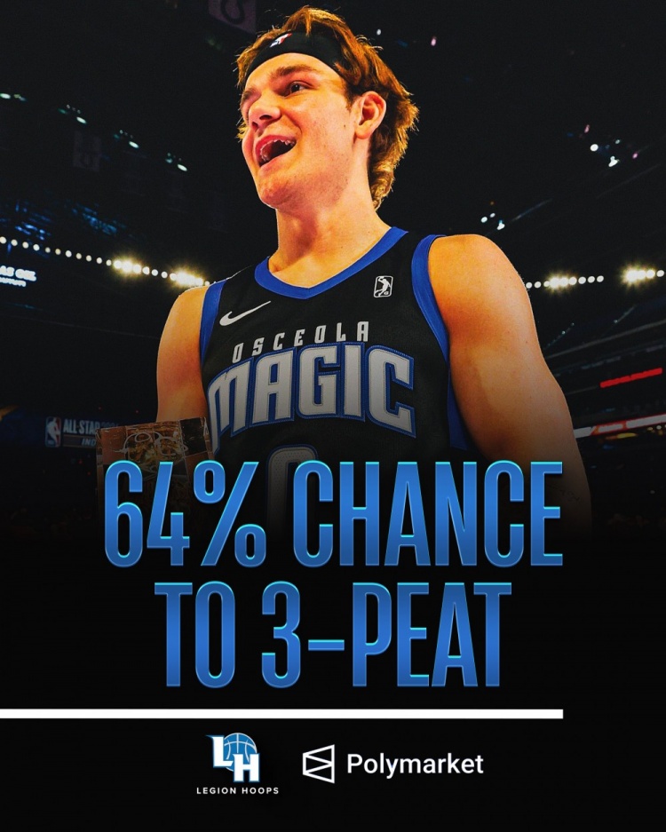 預(yù)測(cè)市場(chǎng)平臺(tái)Polymarket預(yù)測(cè)麥克朗達(dá)成三連冠的幾率為64%。