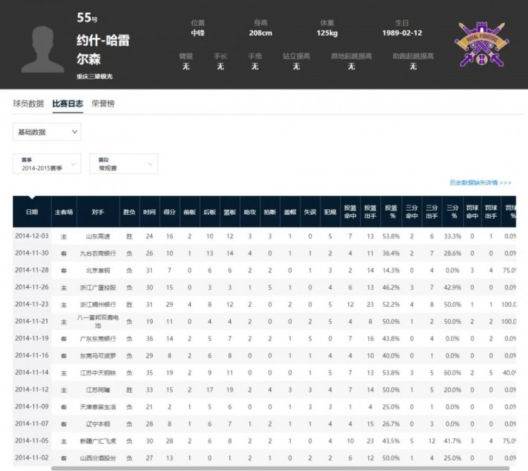 巧合的是,哈雷爾森的下一站也是中國(guó)的職業(yè)籃球聯(lián)賽。塌陷是在2013-14賽季加入了還在NBL的重慶翱龍籃球俱樂部,隨后又和隊(duì)伍一起征戰(zhàn)了2014-15的CBA賽季。