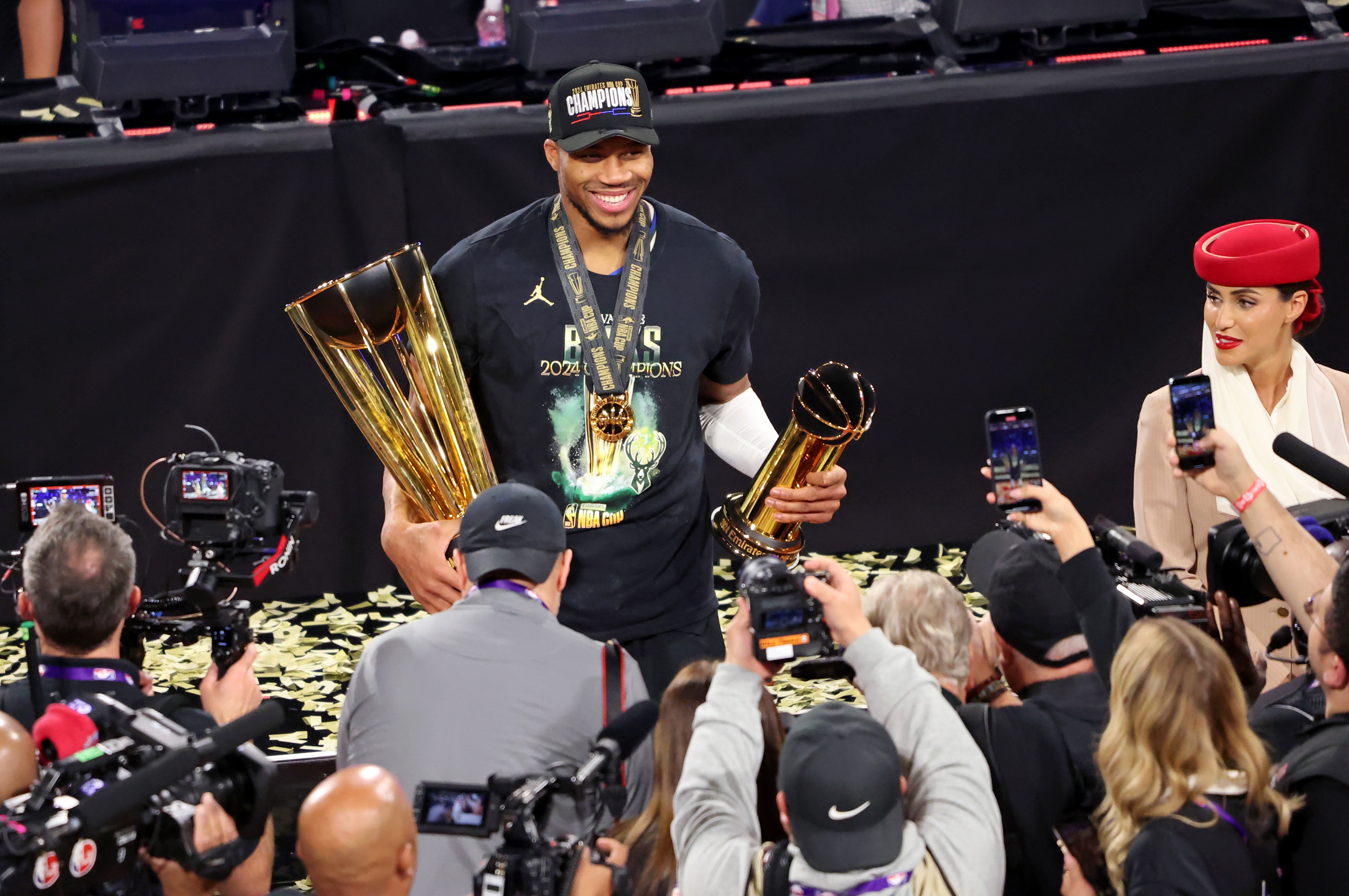 雖然阿德托昆博總共缺席了12場比賽,但就獎項評選而言,他只缺席了11場。為什么?因為在大多數(shù)其他情況下,NBA杯決賽的出場不計入統(tǒng)計或排名,但在評估賽季末的獎項資格時卻可以算作1次出場記錄。