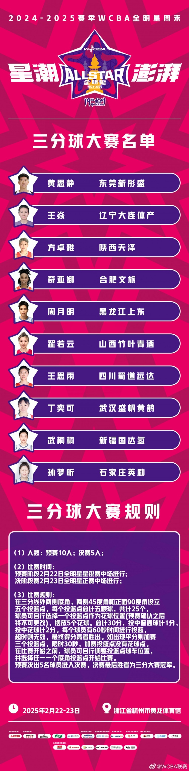 2024-2025賽季W(wǎng)CBA全明星單項(xiàng)賽球員名單火熱出爐!
