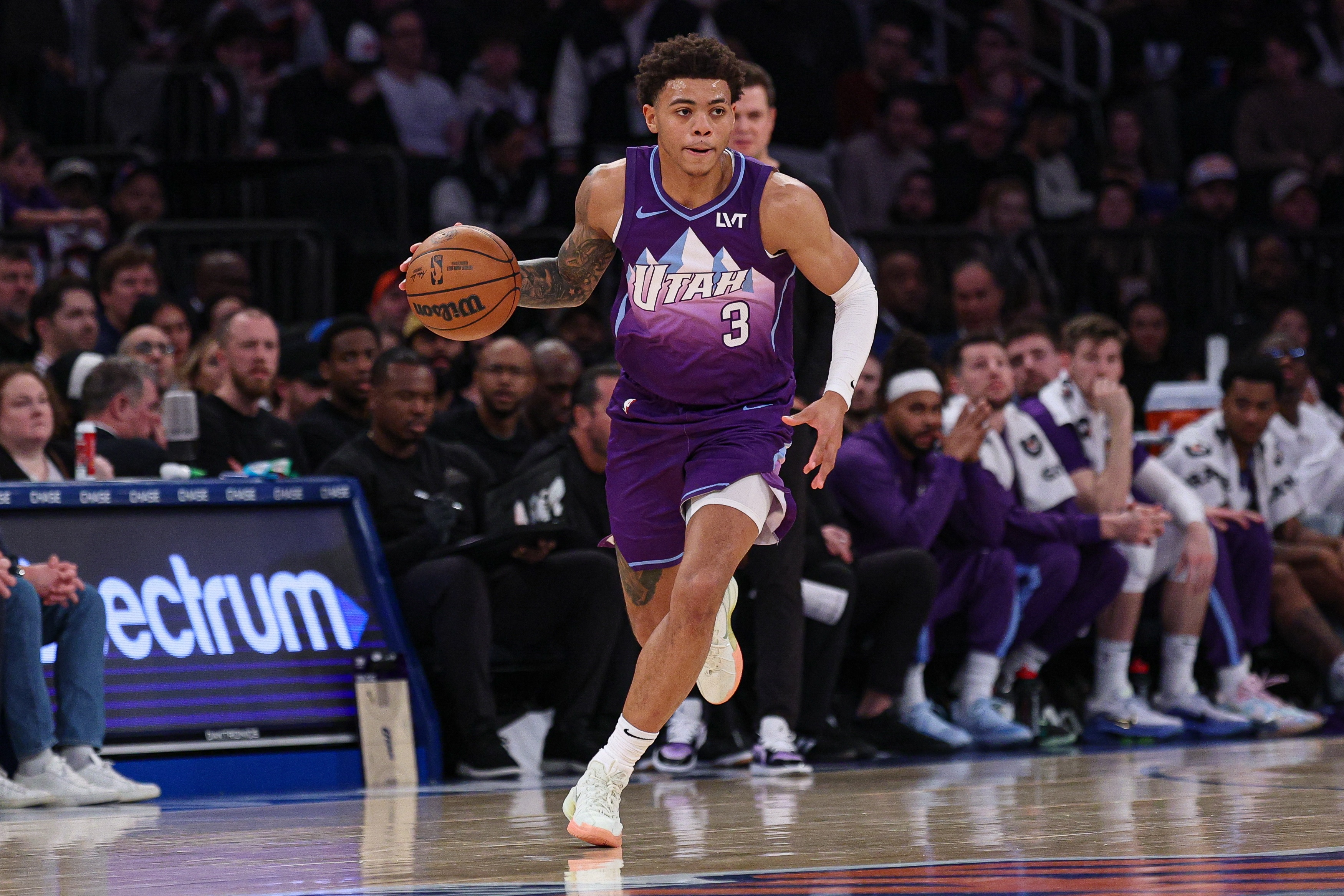 1月26日訊 NBA常規(guī)賽,爵士103-125不敵灰熊。此役爵士后衛(wèi)基昂特-喬治手感冰涼,打了33分鐘15投僅3中,三分8中0、罰球2中2拿到8分3籃板7助攻,正負(fù)值-9。 本文標(biāo)簽: NBA 籃球 爵士