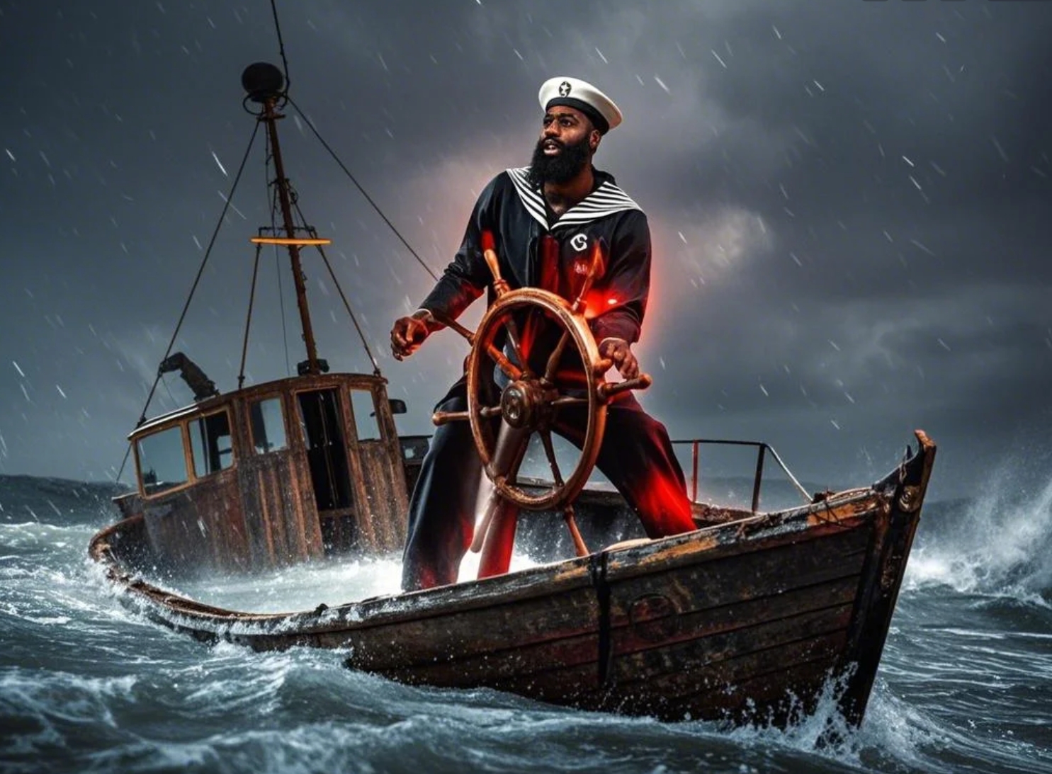 【AI繪圖】大胡子船長(zhǎng)率風(fēng)雨飄搖中即將沉沒(méi)的小破船重回正軌~