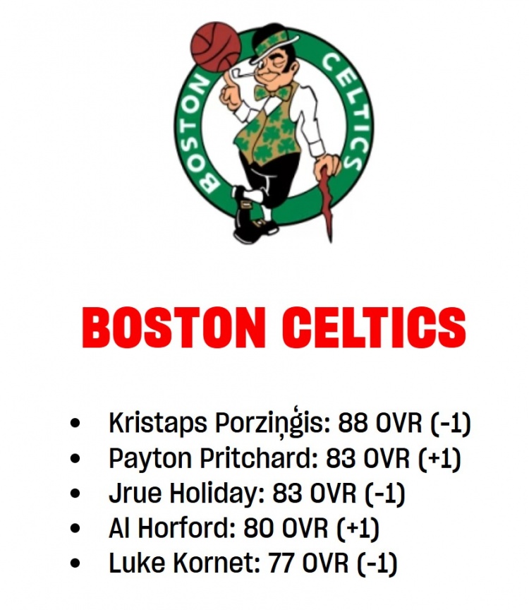 3月7日訊 NBA 2K官網(wǎng)更新了凱爾特人球員的能力值情況,其中,波爾津吉斯、霍勒迪和科內(nèi)特下降,普理查德和霍福德上升,詳情如下: