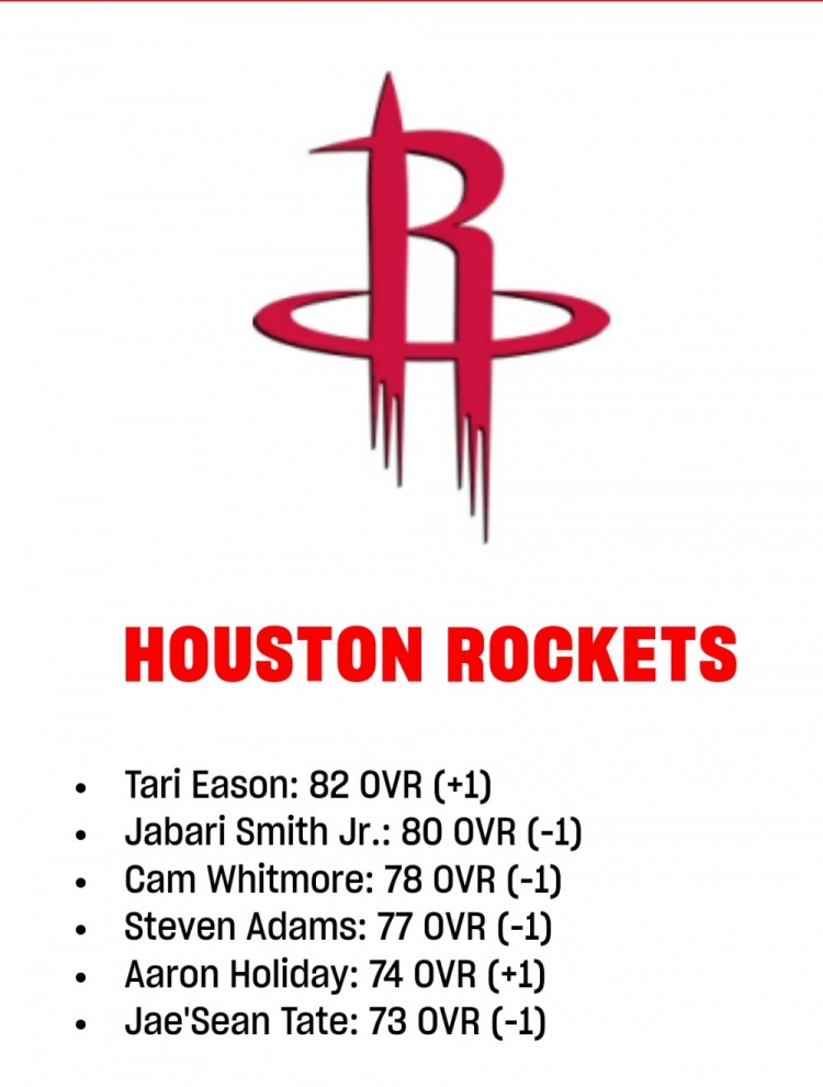 火箭2K能力值更新:伊森升至82 小賈巴里&惠特摩爾分別降至80和78