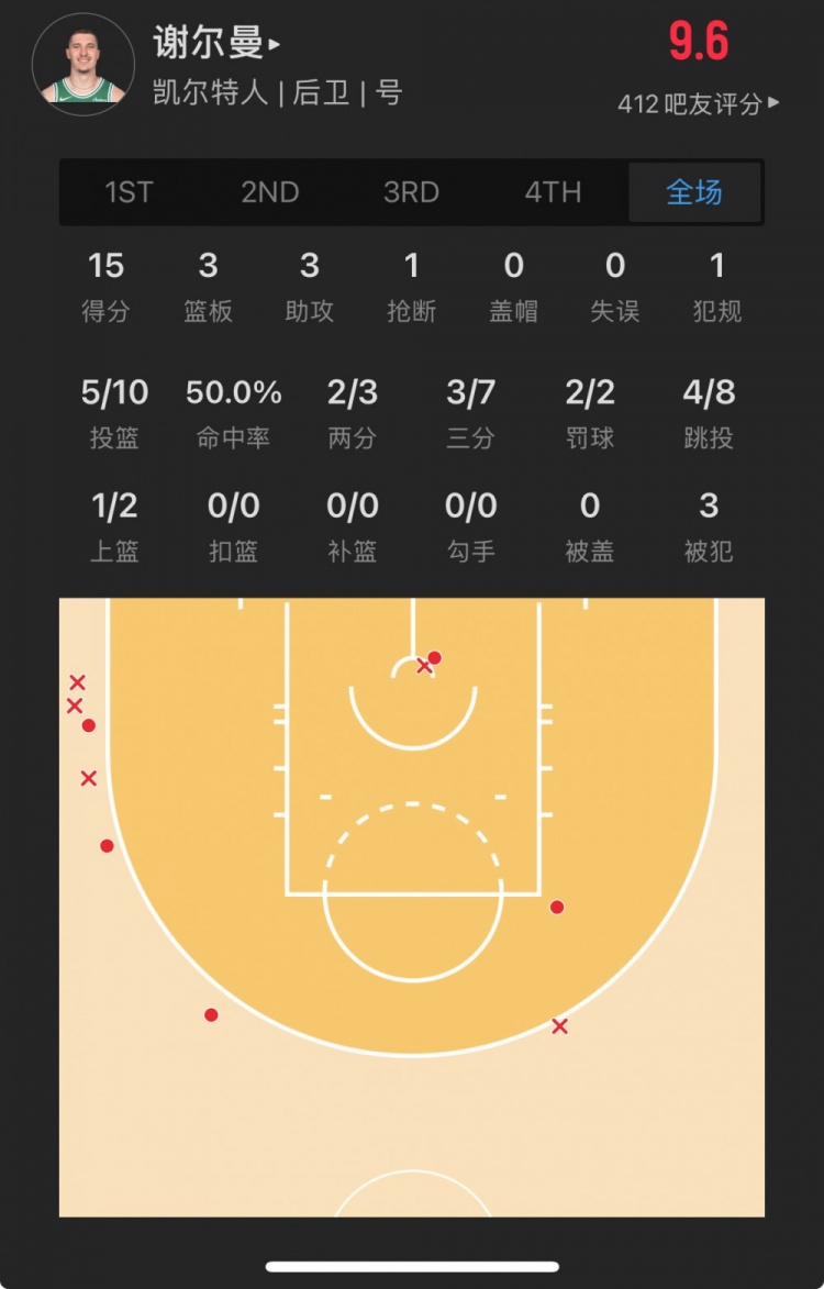 凱爾特人30號(hào)秀 貝勒-謝爾曼 登場(chǎng)29.8分鐘