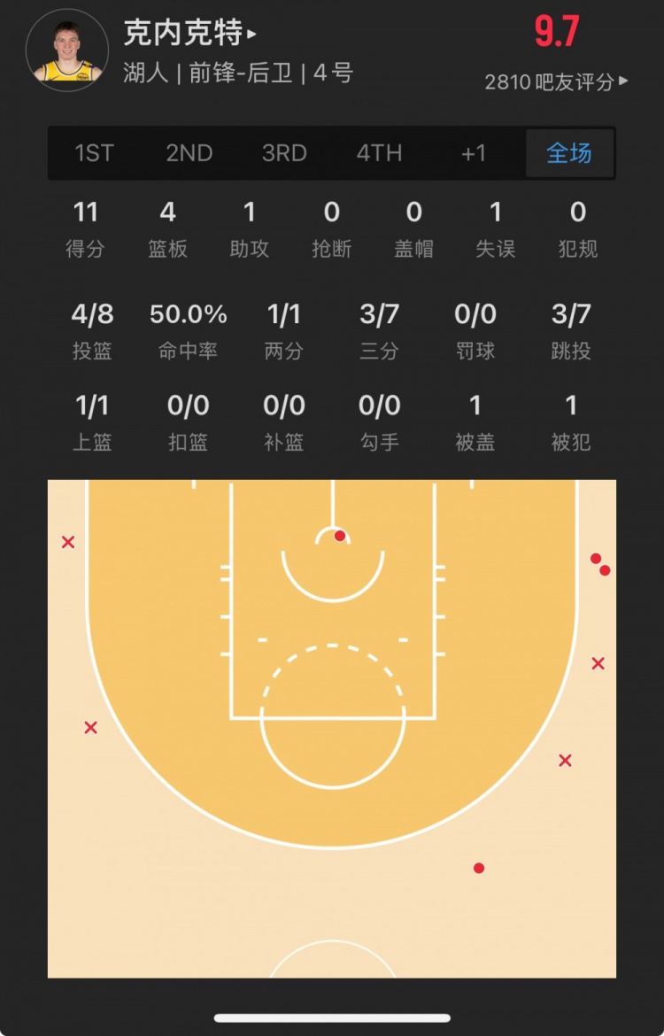 湖人17號(hào)秀 道爾頓-克內(nèi)克特 登場(chǎng)20.6分鐘