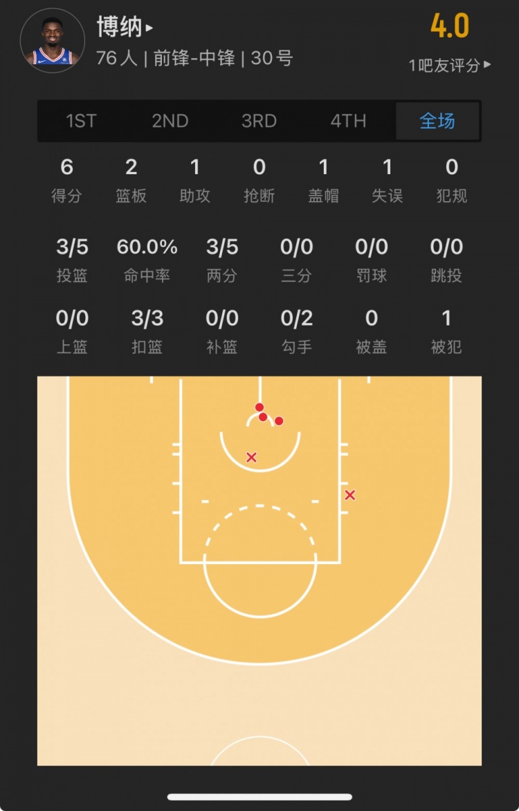 76人41號(hào)秀 阿德姆-博納 登場(chǎng)12.0分鐘