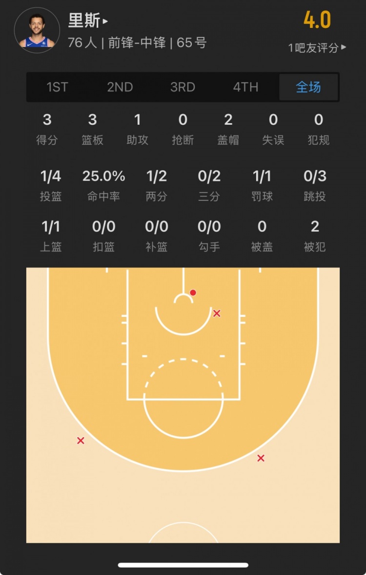 76人落選秀 亞歷克斯-里斯 登場(chǎng)9.7分鐘