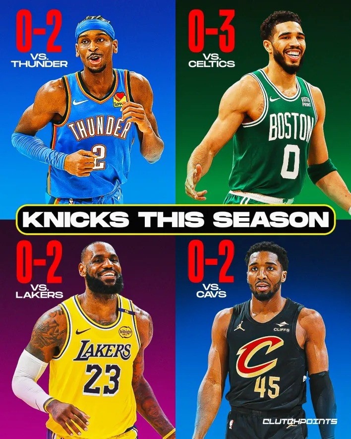 欺軟怕硬?尼克斯本季對(duì)聯(lián)盟前四騎士/雷霆/綠軍/湖人共0勝9負(fù)