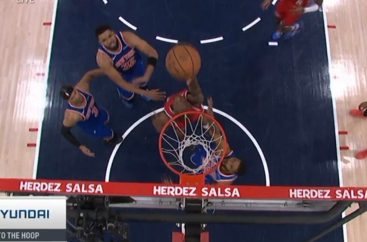 回頭望月!小卡猶豫步突破 籃下面對圍剿背對籃筐拋進(jìn)