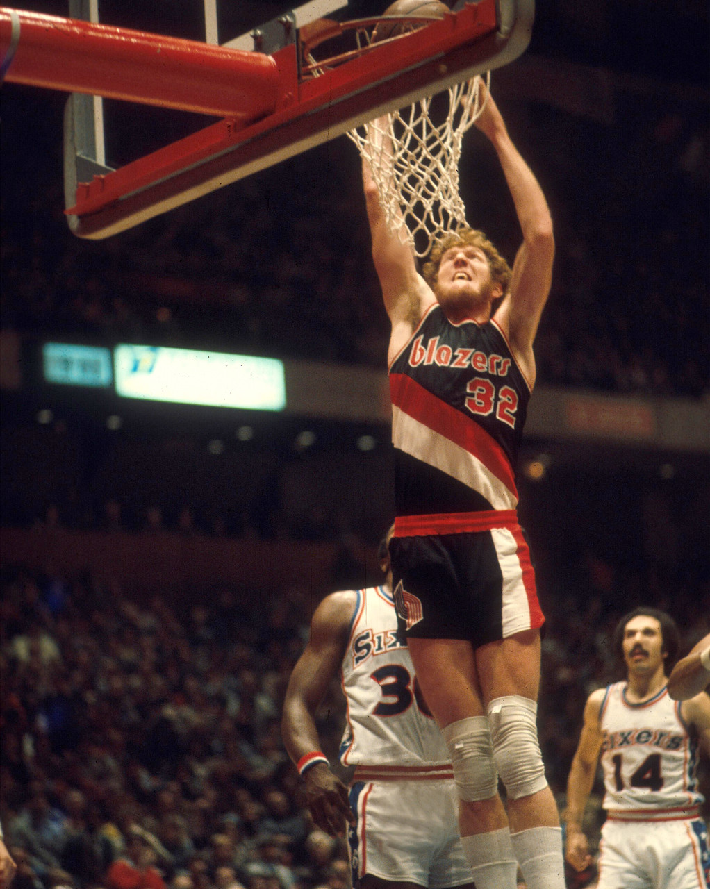 至少在比爾-沃頓的雙腳傷病徹底毀了他的職業(yè)生涯之前,開拓者在1977年憑借他的出色表現(xiàn)奪得了總冠軍。從某種意義上說,有人可能會(huì)認(rèn)為,沃頓帶領(lǐng)開拓者戰(zhàn)勝“J博士”歐文率領(lǐng)的76人這一事實(shí),讓他比恩比德更“出色”。但這并不能改變另一個(gè)事實(shí),那就是沃頓因?yàn)閭∪毕苏膫€(gè)賽季,在他出戰(zhàn)的10個(gè)賽季中,有9個(gè)賽季出戰(zhàn)場(chǎng)次不超過67場(chǎng)。