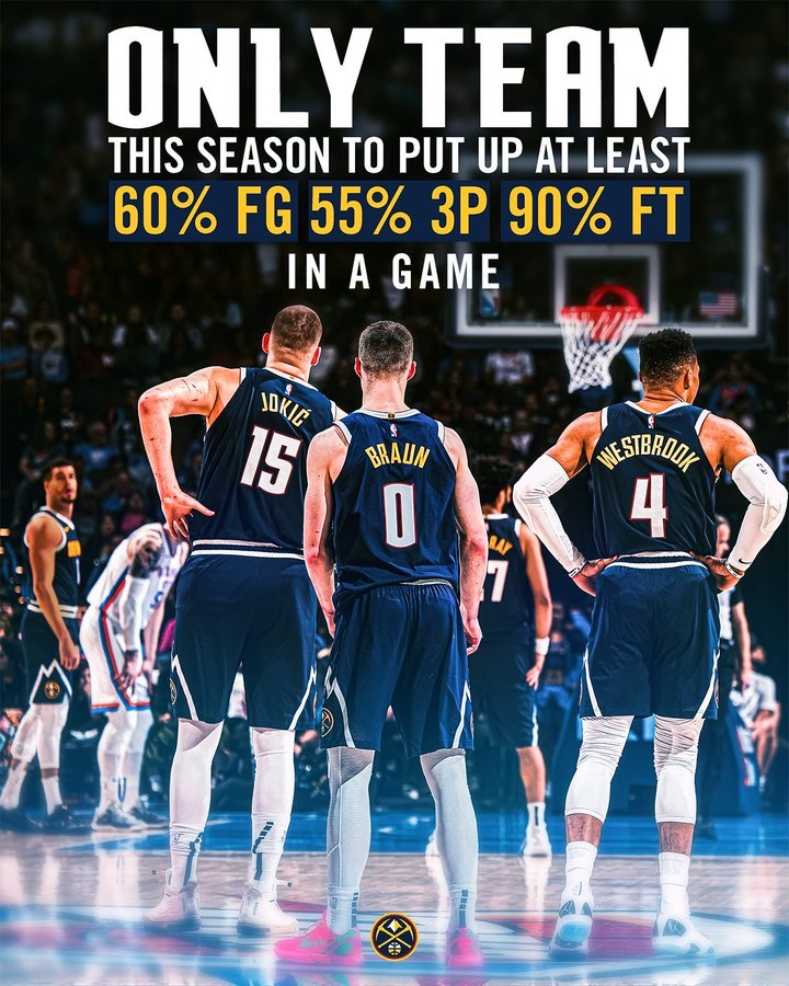 3月12日訊 昨天,掘金客場(chǎng)以140-127力克雷霆。此役,掘金運(yùn)動(dòng)戰(zhàn)86中52,命中率60.5%;其中三分32中18,命中率56.3%;罰球20中18,命中率90%。據(jù)統(tǒng)計(jì),掘金是本賽季首支球隊(duì)在一場(chǎng)比賽中打出60-55-90%的命中率。而且掘金打的是聯(lián)盟第一防守的雷霆。 本文標(biāo)簽: 籃球 NBA 雷霆 掘金