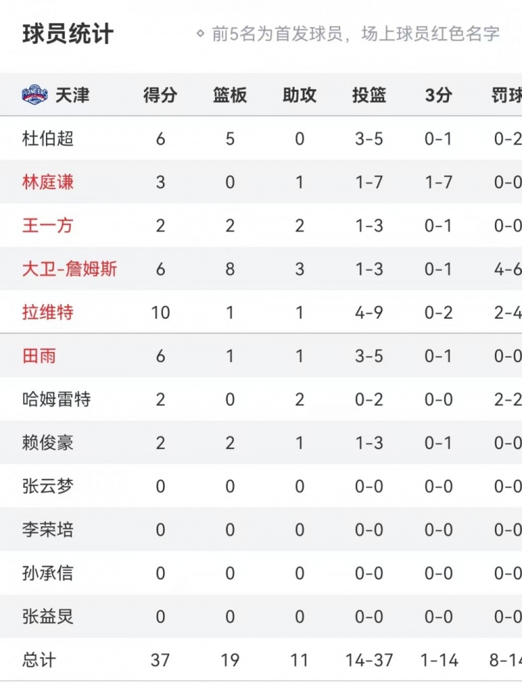 3月12日訊 CBA常規(guī)賽,天津上半場37-41落后廣州。天津全隊上半場在三分線外的手感都不理想,全隊出手14次三分僅投中1球,其中林庭謙一人三分7投1中。 本文標(biāo)簽: 籃球 CBA 中國籃球 天津