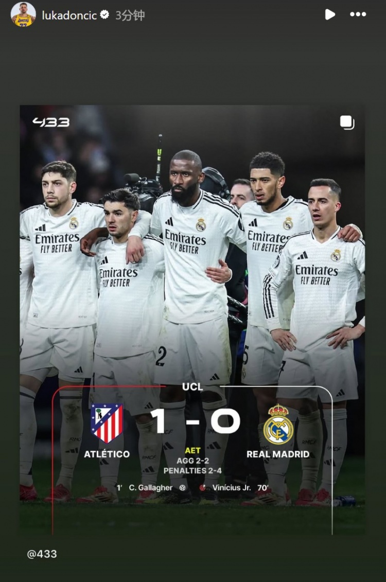 3月13日訊 歐冠1/8決賽次回合,皇馬通過(guò)點(diǎn)球大戰(zhàn)淘汰馬競(jìng),晉級(jí)歐冠八強(qiáng)。湖人球星東契奇在INS轉(zhuǎn)發(fā)報(bào)道,祝賀老東家。在進(jìn)入NBA之前,東契奇曾效力于皇馬籃球俱樂(lè)部。 本文標(biāo)簽: 籃球 NBA 湖人 東契奇