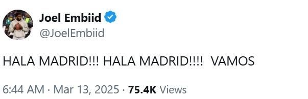 3月13日訊 歐冠1/8決賽次回合,皇馬通過點(diǎn)球大戰(zhàn)淘汰馬競,晉級(jí)歐冠八強(qiáng)。恩比德更推道:“加油皇馬!加油皇馬!加油!”勘誤:小編錯(cuò)將標(biāo)題中的晉級(jí)寫成了緊急,現(xiàn)已改正,感謝各位吧友批評(píng)指正。 本文標(biāo)簽: 籃球 NBA 76人 恩比德