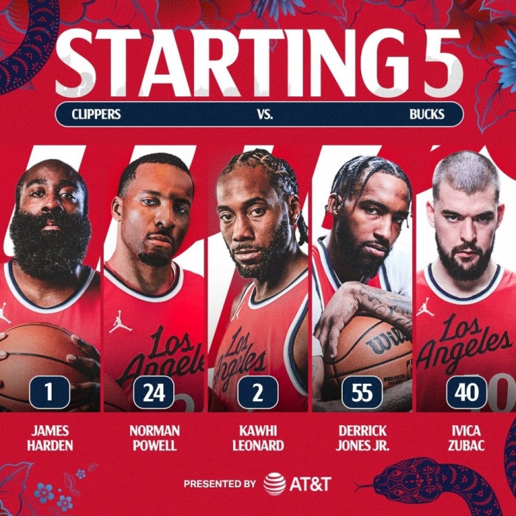 完全體再出擊!快船vs雄鹿首發(fā):哈登/鮑威爾/小卡/瓊斯/祖巴茨