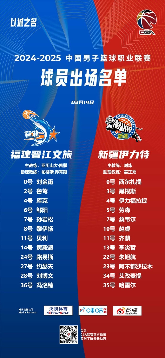 3月14日訊 今晚7點(diǎn)35分,新疆男籃將在客場挑戰(zhàn)福建男籃。兩隊(duì)本場比賽的大名單已經(jīng)出爐,哈雷爾在列。具體名單如下:新疆隊(duì):西爾扎提、黑根斯、伊力福拉提、勞森、桑韋爾、趙睿、齊麟、李炎哲、朱旭航、阿不都沙拉木、艾孜麥提、哈雷爾福建隊(duì):劉金雨、魯驁、庫克、鄒陽、孫巖松、黎伊揚(yáng)、貝利、黃毅超、路易斯、約瑟夫、劉博文、馮洺臻 本文標(biāo)簽: 籃球 CBA 中國籃球 新疆 福建
