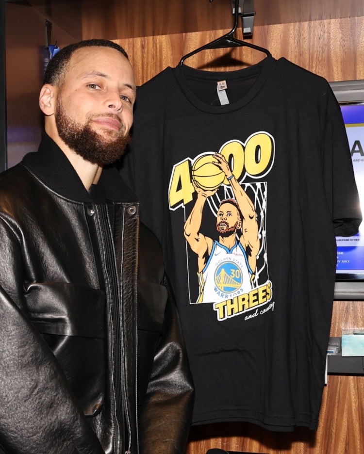 賽后NBA官推曬出了庫里穿皮衣與4000三分T恤合照,并寫道:Mr.4K(4000三分先生)!