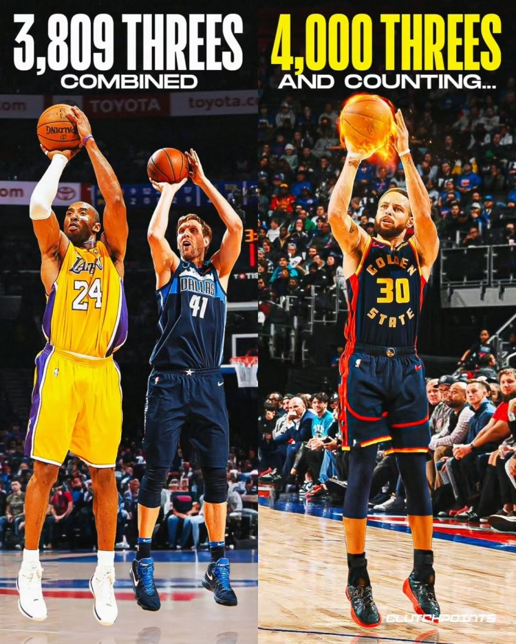 - 科比諾維茨基生涯合計投中3809記三分 合起來不敵庫里的4000記