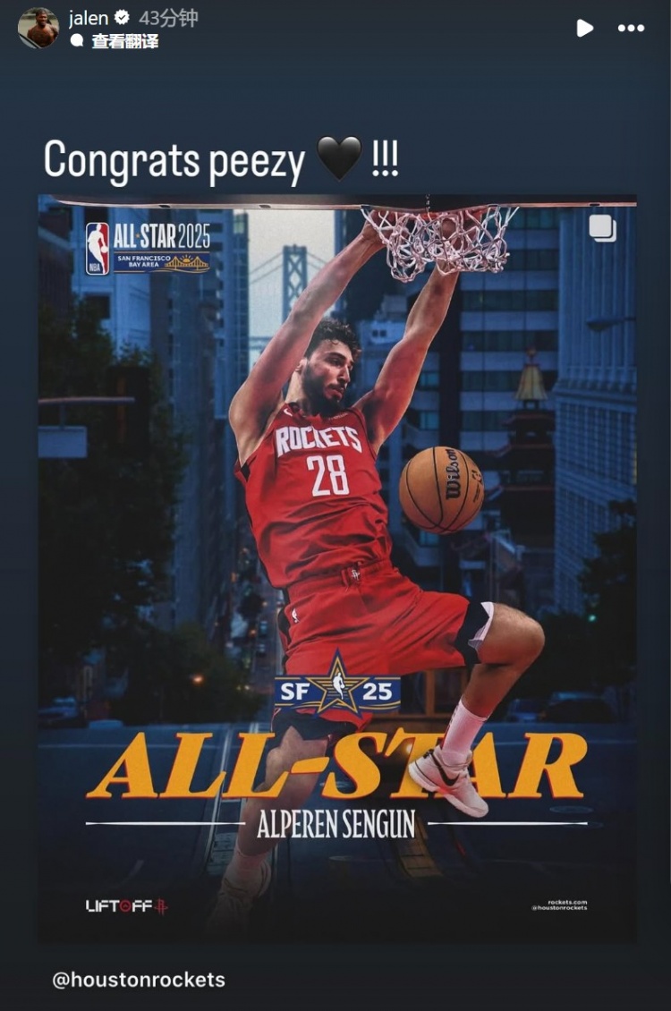 隨后,火箭隊(duì)友發(fā)來(lái)賀電。杰倫-格林在INS轉(zhuǎn)發(fā)道:“恭喜??!”