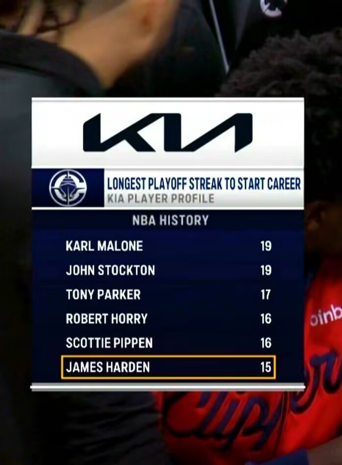 今年穩(wěn)了嗎?哈登生涯前15個(gè)賽季均打進(jìn)季后賽 歷史第4長(zhǎng)紀(jì)錄