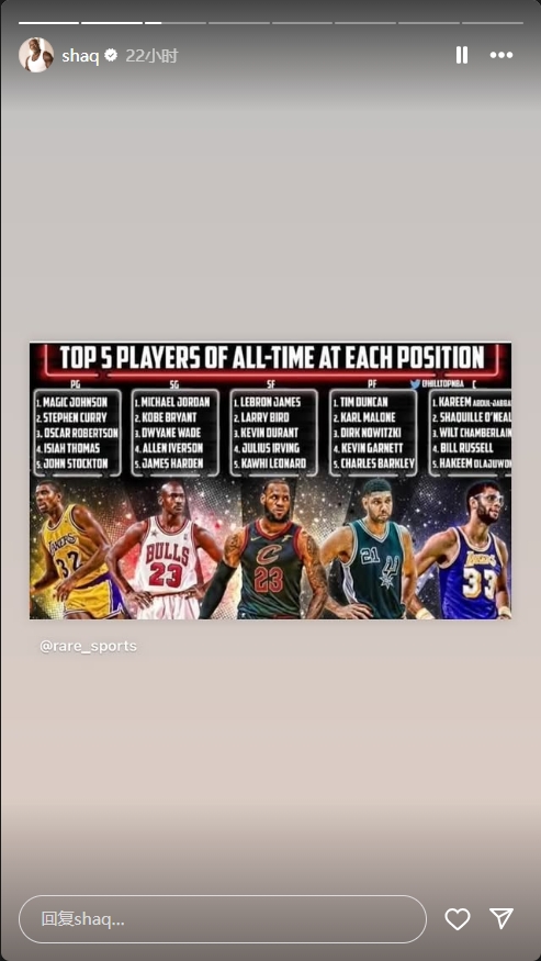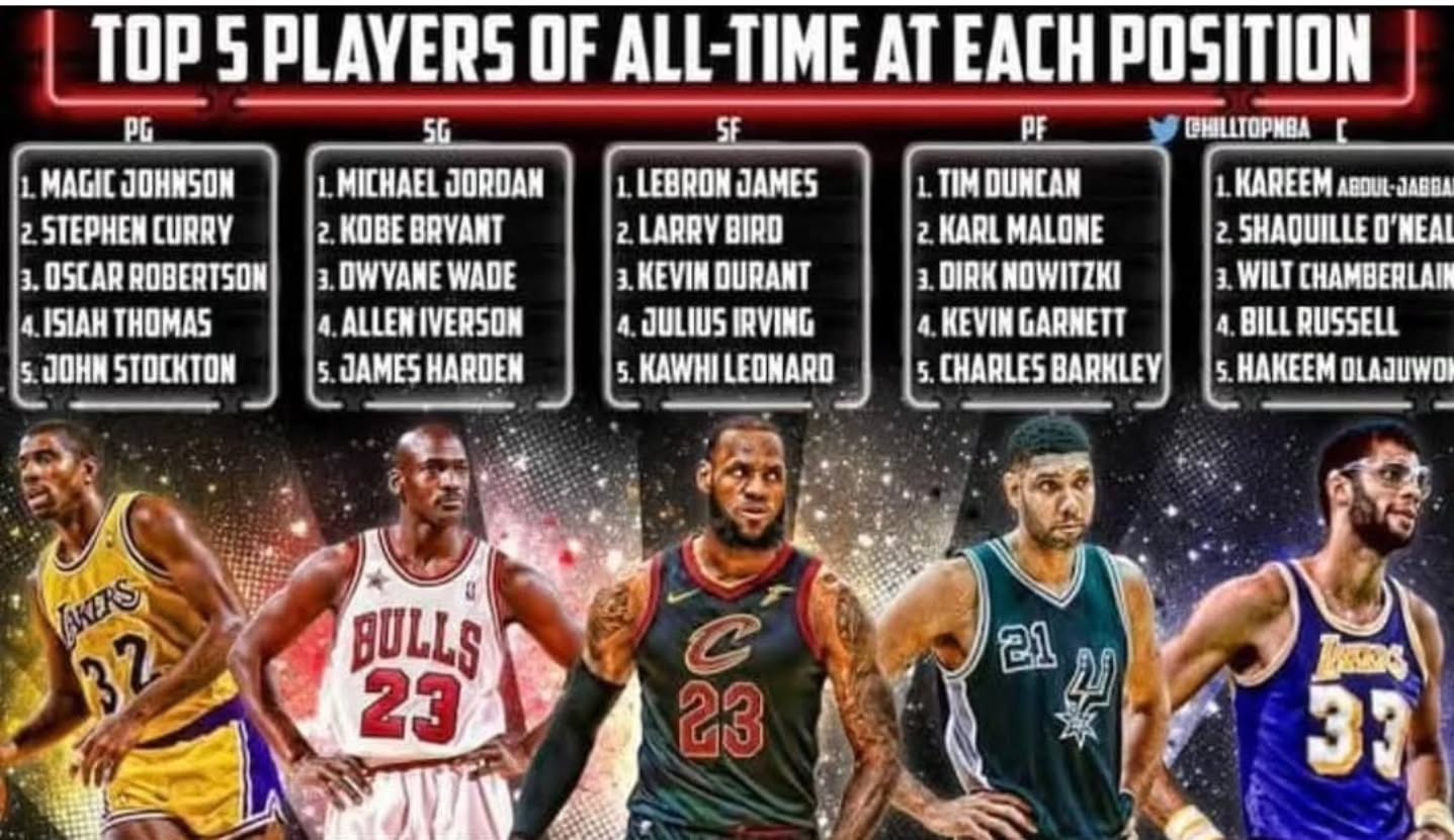 鯊魚(yú)曬各位置歷史TOP5:后衛(wèi)魔術(shù)師/喬丹 前鋒老詹/石佛 中鋒天勾