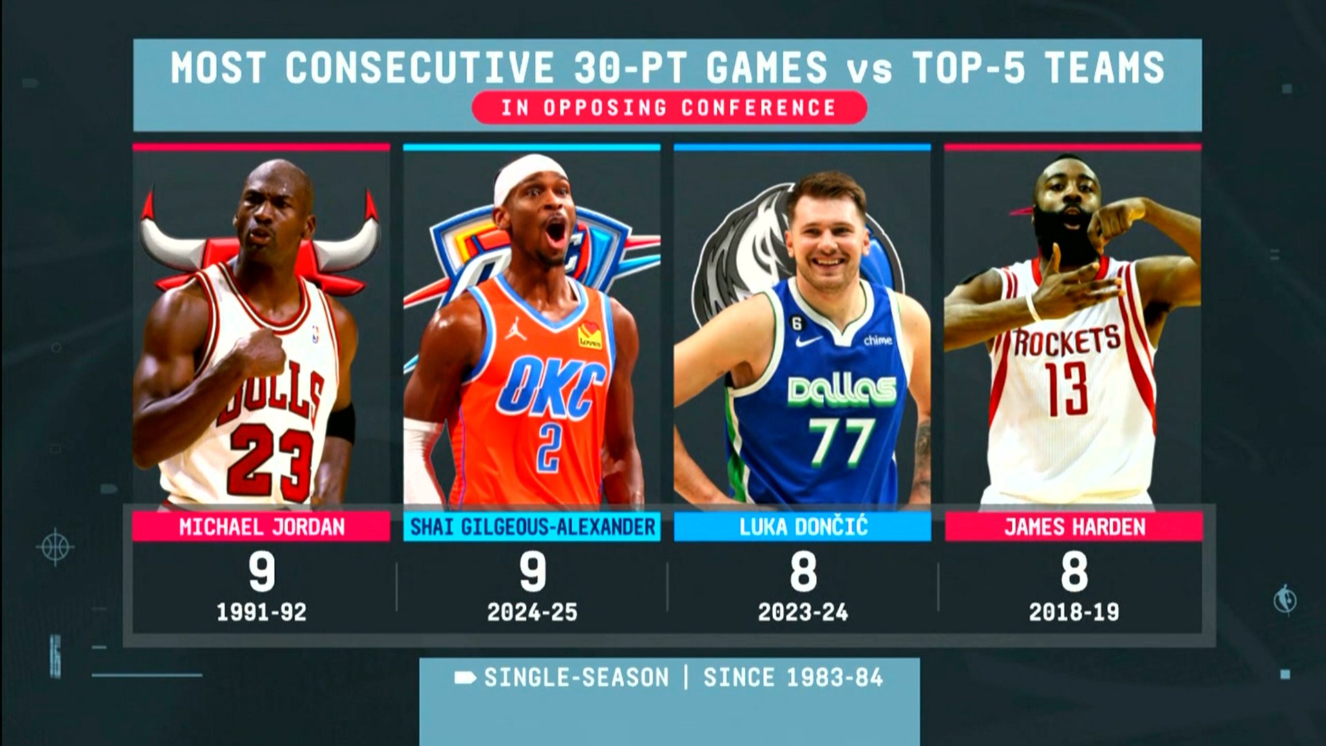 喬丹 1991-92賽季 打西部前五連續(xù)9場30+東契奇 23-24賽季 打東部前五連續(xù)8場30+哈登 18-19賽季 打東部前五連續(xù)8場30+ 本文標(biāo)簽: 籃球 NBA 公牛 雷霆 喬丹 湖人