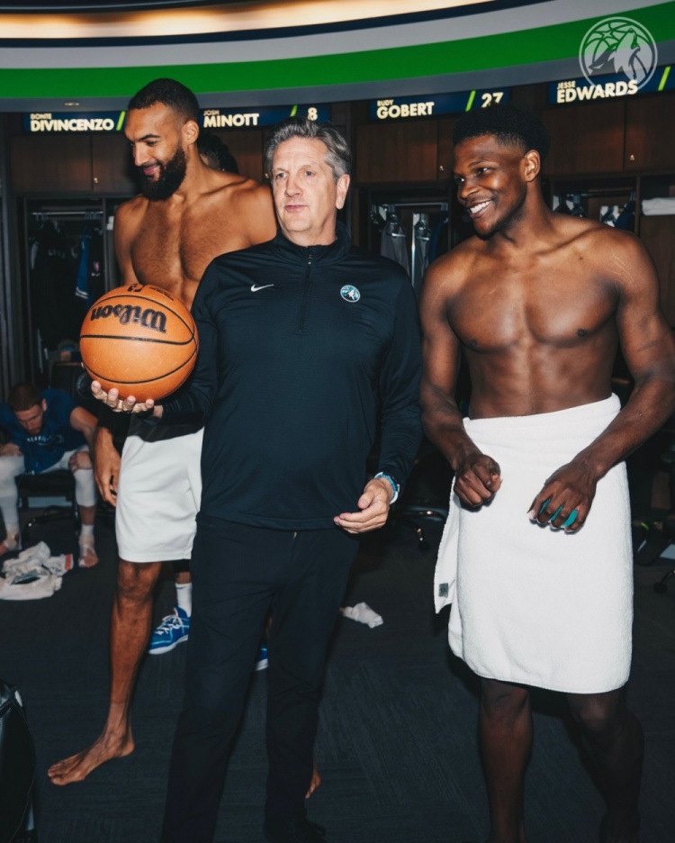 3月17日訊 NBA常規(guī)賽,森林狼今日主場(chǎng)128-102大勝爵士。這是球隊(duì)主帥芬奇的生涯第200場(chǎng)勝利。賽后全隊(duì)在更衣室為芬奇慶祝,后者也拿到了比賽用球。愛(ài)德華茲和戈貝爾更是僅僅裹著一條浴巾就和芬奇合影,老將英格爾斯也擁抱送上祝賀。 本文標(biāo)簽: 籃球 NBA 森林狼