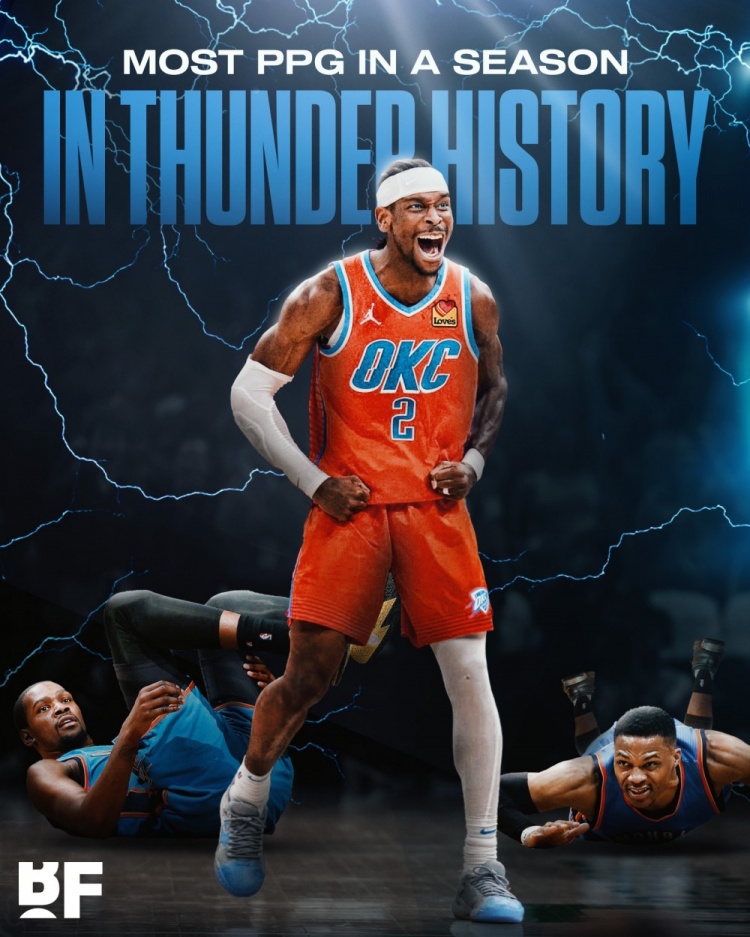 杜蘭特在13-14賽季效力雷霆期間曾場(chǎng)均砍下32分(并拿下MVP)威少在2016-17賽季效力雷霆期間曾場(chǎng)均砍下31.6分(并拿下MVP) 本文標(biāo)簽: 籃球 NBA 雷霆 亞歷山大 威少 杜蘭特