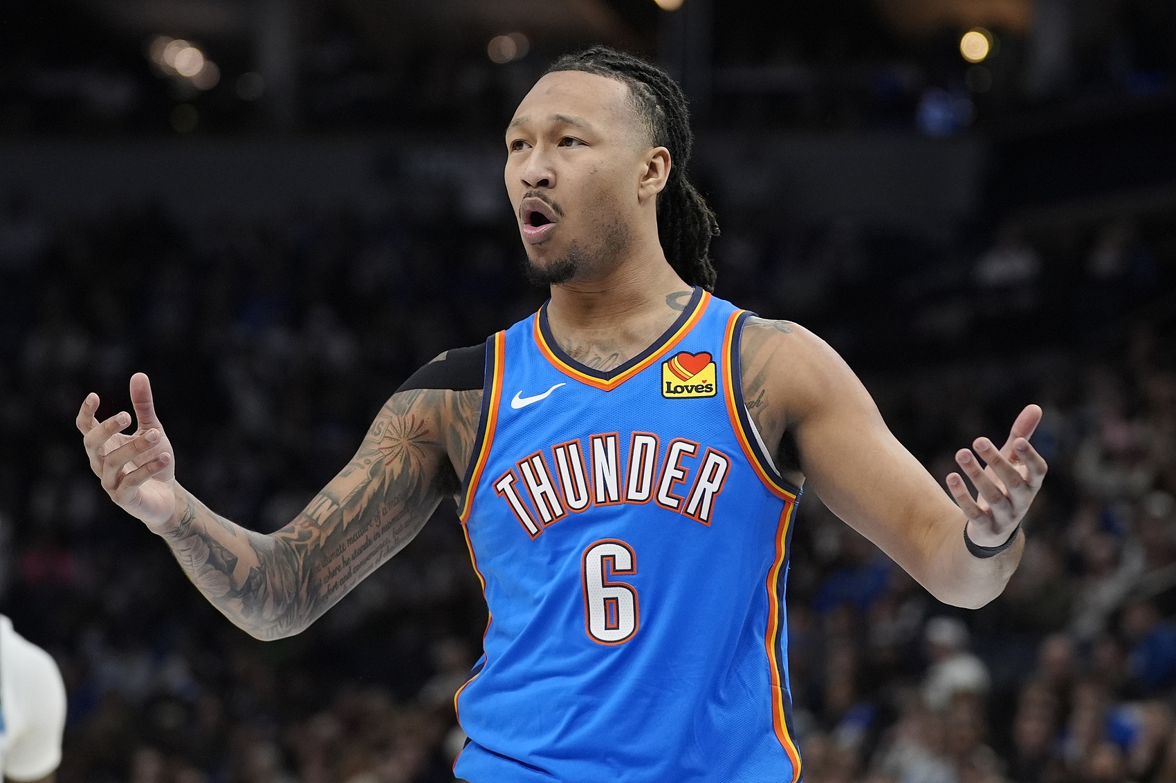 杰林-威廉姆斯在賽后談到雷霆隊(duì)的防守時(shí)表示:“就是能量,還有信念,堅(jiān)決執(zhí)行我們的比賽計(jì)劃。防守時(shí)需要五個(gè)人投入的,不是簡(jiǎn)單的一對(duì)一或者二對(duì)二。無論場(chǎng)上形勢(shì)如何,這都是場(chǎng)上五個(gè)人共同對(duì)抗對(duì)面的五個(gè)人?!?/span>