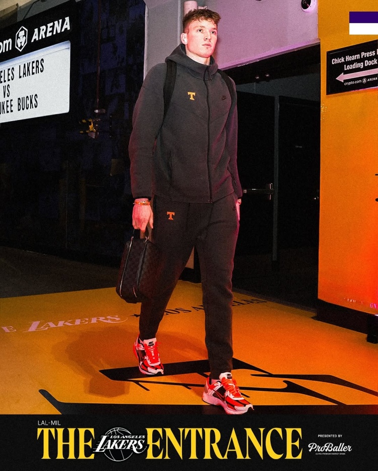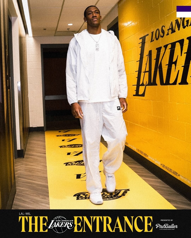 湖人眾將入場穿搭:文森特墨鏡配項(xiàng)鏈 布朗尼蜘蛛連帽衫
