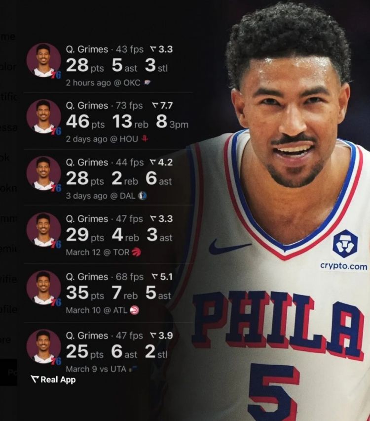 一邊是兩大頂薪報銷,一邊是清倉拋售當(dāng)家球星,正當(dāng)專家球迷們糾結(jié)年度最二管理層應(yīng)該頒給76人還是獨(dú)行俠的時候,很快一個球員用一波個人秀宣告了比賽結(jié)束:穿上費(fèi)城球衣的昆廷-格萊姆斯在18場比賽里場均轟下21.8分,其中包括一場對火箭的46分,一場對勇士的44分,還有一場重返達(dá)拉斯干翻全場的28分帶走勝利,現(xiàn)實(shí)上演了一出爽文劇情。