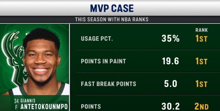 3月23日訊 今天上午10點,雄鹿將在客場挑戰(zhàn)國王。比賽開始前,電視轉播商列舉了字母哥競爭本賽季MVP的優(yōu)勢,賽季至今,字母哥的使用率35%,聯(lián)盟第1,場均禁區(qū)得分19.6分,聯(lián)盟第1,場均快攻得分5分,聯(lián)盟第1,場均30.2分,聯(lián)盟第2。 本文標簽: 籃球 NBA 雄鹿 字母哥