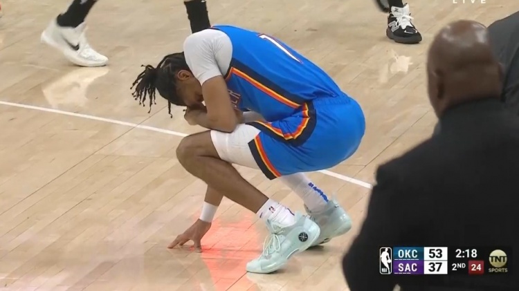 暈乎了!以賽亞-喬和埃利斯?fàn)帗屒?被后者坐到臉部貼地&下場(chǎng)檢查