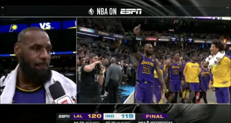 3月27日訊 今日,湖人120-119客場險勝步行者,結束三連敗。湖人前鋒詹姆斯完成補籃壓哨絕殺。