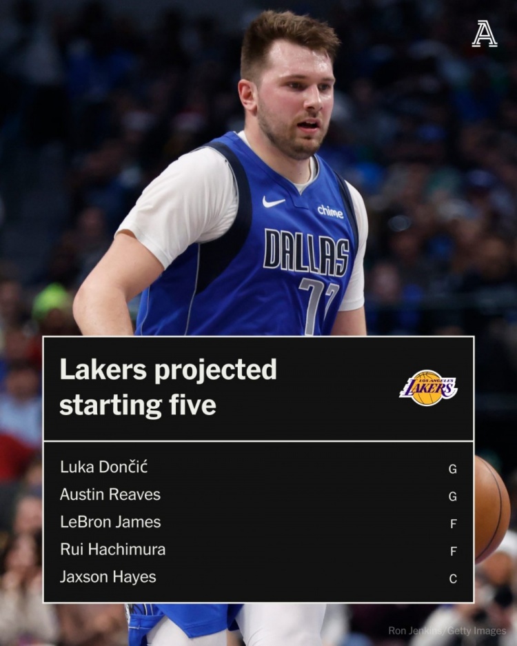 TA預(yù)測(cè)湖人首發(fā):東契奇、里夫斯、詹姆斯、八村塁、海斯