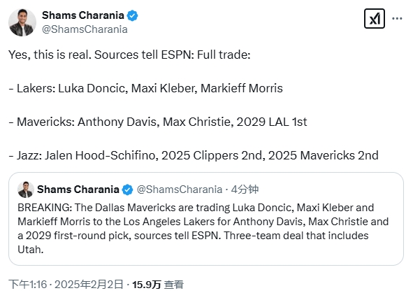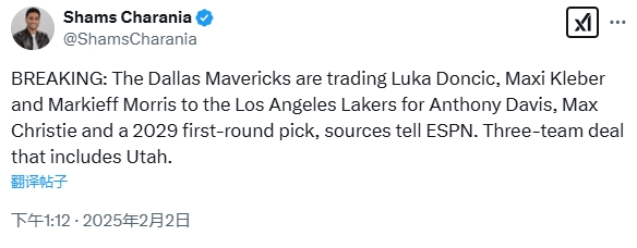 - 這是真的!Shams再次確認(rèn)湖人和獨(dú)行俠交易 并補(bǔ)充了細(xì)節(jié)