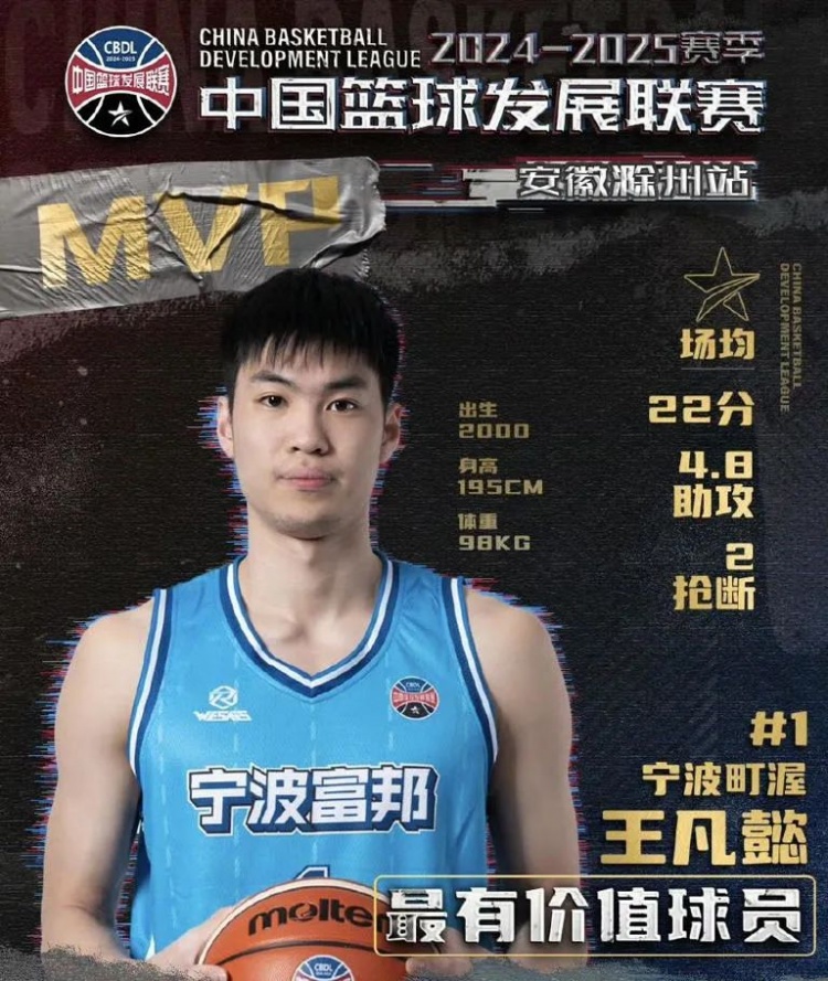 于是,王凡懿就只能去CBDL發(fā)光發(fā)熱了,不出意料的是,他在這里如魚得水……第二階段滁州站比賽,寧波在他的帶領下6戰(zhàn)全勝,王凡懿也以場均22分4.8助攻2搶斷收獲賽事MVP……