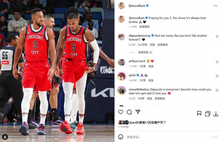2月2日訊 此前鵜鶘官方宣布,球隊后衛(wèi)德章泰-穆雷被診斷為右跟腱斷裂,賽季報銷。隊友CJ在INS上為其送上祝福:“5號,為你祈禱。你知道我們之間的情誼永存。????????????”穆雷則是回復:“像你這樣的不多了,兄弟?。∥矣肋h的兄弟?!?/p> 本文標簽: 籃球 NBA 鵜鶘