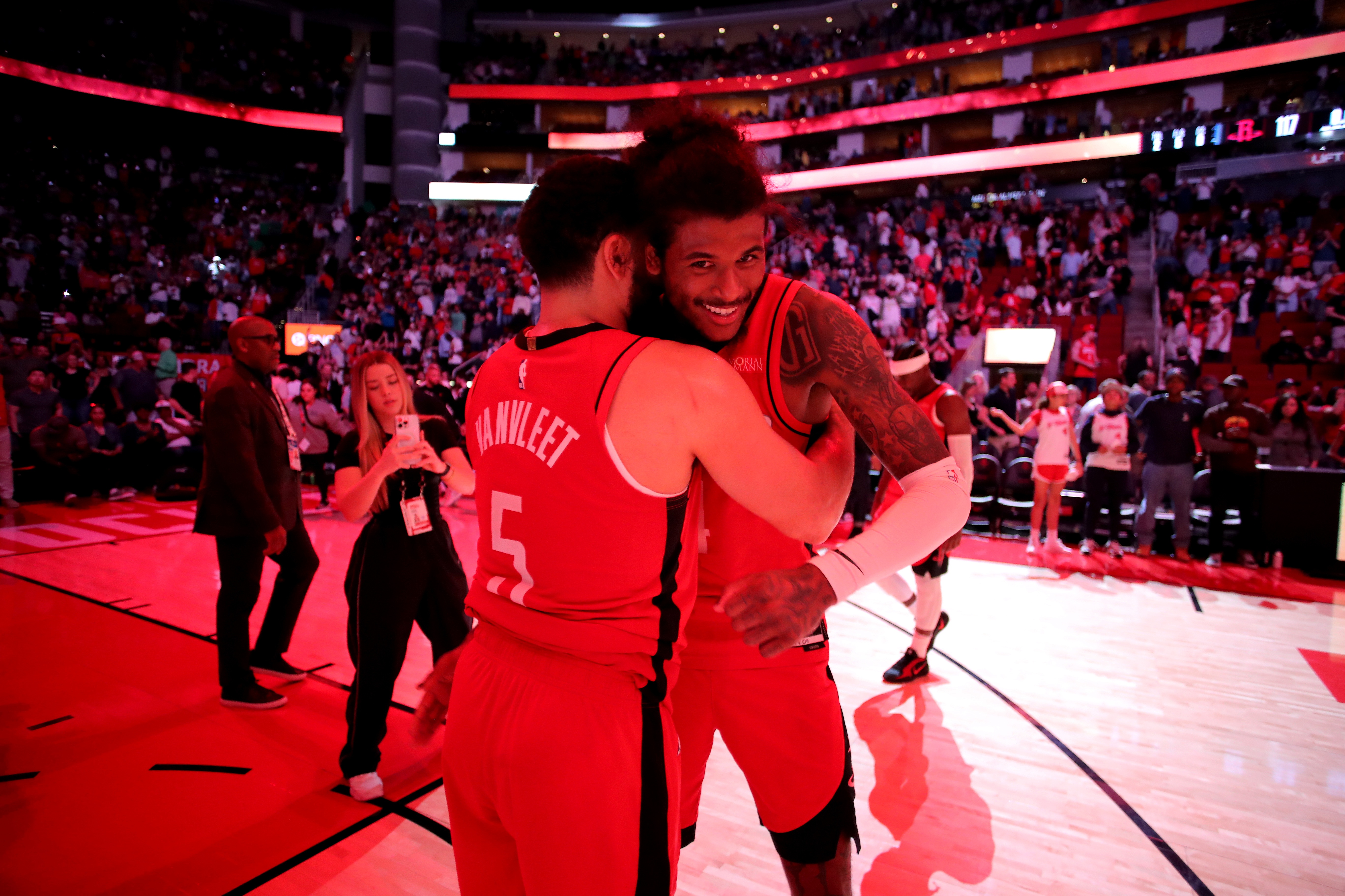 第一節(jié),火箭首發(fā)雙后衛(wèi)手感冰涼,杰倫-格林10分鐘5投0中,三分1中0沒得分,有4籃板4助攻1搶斷1蓋帽,正負值+1;