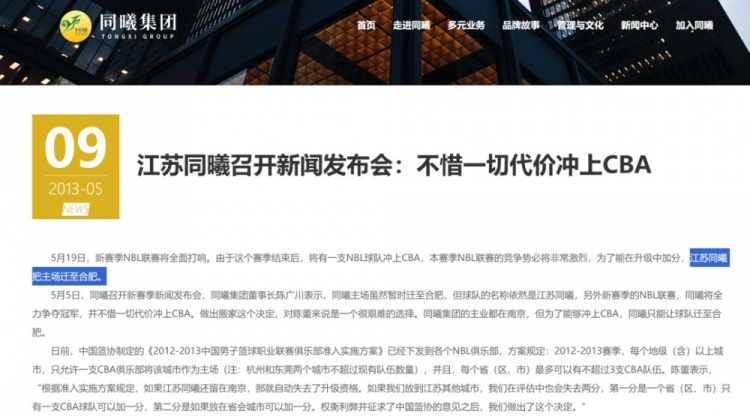 渴望晉級(jí)CBA的同曦俱樂部每分必爭,最終只能忍痛搬家到相鄰省份安徽的省會(huì)合肥。但在陳廣川的力主下,球隊(duì)仍命名為“江蘇同曦”而非“安徽同曦”。俱樂部更對(duì)球迷做出承諾:“我們同曦集團(tuán)的大本營在南京,我們的球隊(duì)一定會(huì)殺回來的?!憋@然,主場遷出江蘇省,不過是同曦為了打CBA的權(quán)宜之計(jì)。