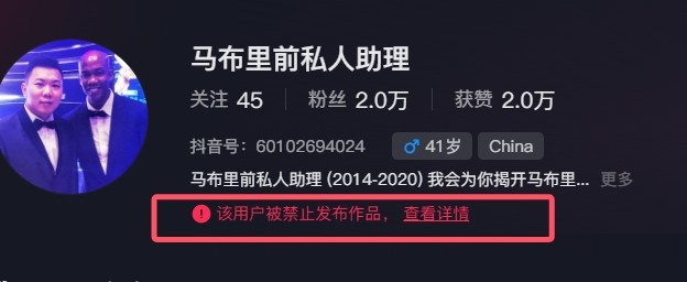2月4日訊 今日,自稱是馬布里前私人助理的抖音賬號被禁言。