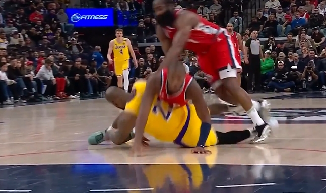 人仰馬翻!詹姆斯奮力回追被鄧恩壓倒痛苦倒地 調(diào)整后執(zhí)行罰球