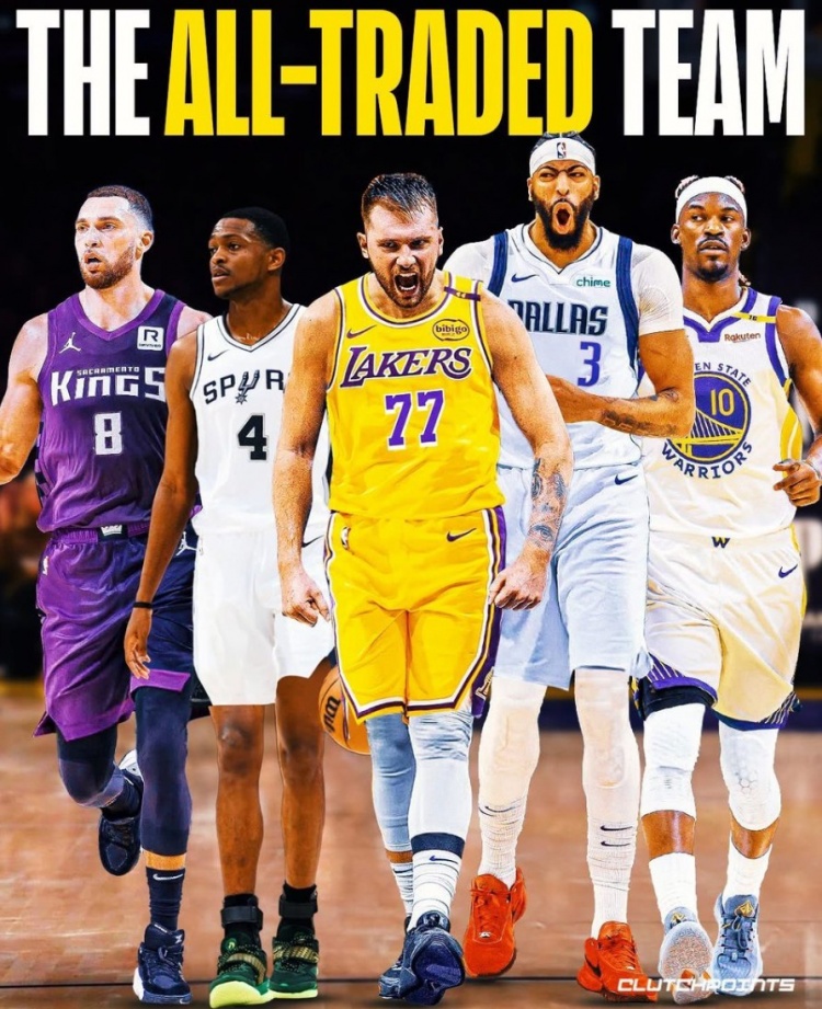 目前被交易的球星組隊(duì)首發(fā):東契奇、濃眉、??怂?、拉文、巴特勒替補(bǔ):英格拉姆、維金斯、庫茲馬、瓦蘭、馬克-威廉姆斯 本文標(biāo)簽: NBA 籃球 湖人 戴維斯 獨(dú)行俠 東契奇 勇士 巴特勒 國王 馬刺