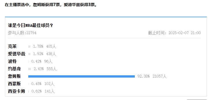 在主播票選中,詹姆斯獲得7票,愛德華茲獲得3票。