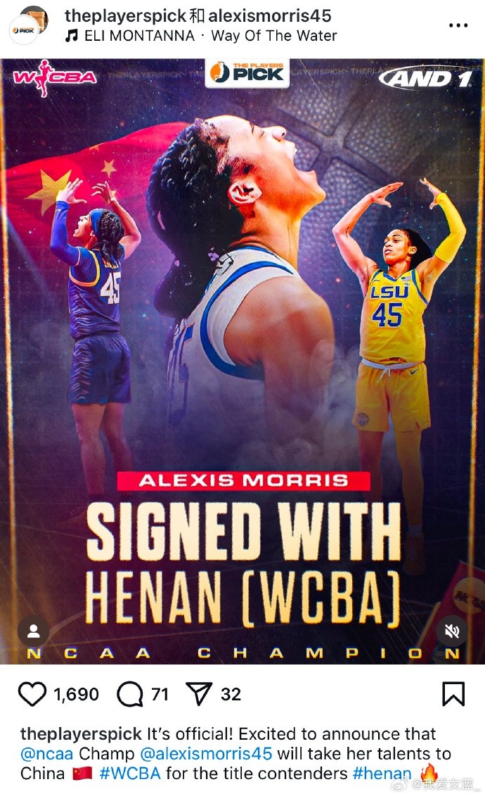 昨天深夜,據(jù)經(jīng)紀公司ThePlayersPick消息,原路易斯安那州立大學(xué)女籃后衛(wèi)艾里克西斯-莫里斯簽約河南女籃。艾里克西斯身高1米75,今年25歲,曾隨路易斯安那州立大學(xué)女籃奪得2023年NCAA全國冠軍。2023年WNBA選秀總第22順位被康涅狄格太陽隊選中。