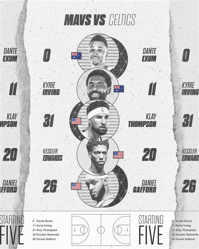 2月7日訊 今天上午8:30,獨行俠對陣凱爾特人,賽前雙方公布了本場首發(fā):