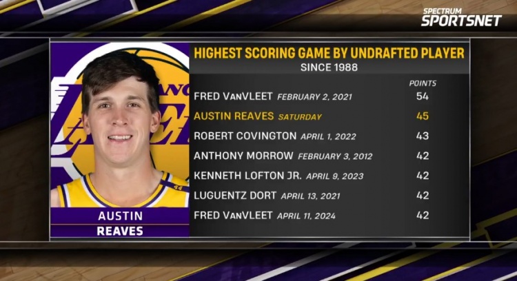 2月9日訊 NBA常規(guī)賽,湖人在主場以124-117擊敗步行者。此役,里夫斯出戰(zhàn)40分30秒,投籃26中14,三分9中4,罰球13中13,得到45分7籃板7助攻3搶斷。據(jù)統(tǒng)計,單場45分是NBA歷史落選秀單場第二高得分,僅次于范弗里特的54分。 本文標簽: NBA 籃球 湖人